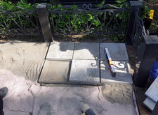 Дожидаемся высыхания бетонной плитки, затем проверяем её на прочность. Покрытие не поддаётся внешнему воздействию, а значит цемент успешно застыл и плитка надёжно зафиксирована на могиле. Фотографируем окончательное состояние места захоронения.