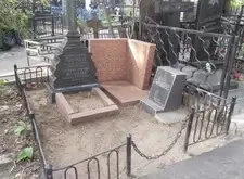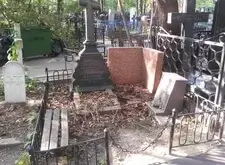 Старая могила, которая достаточно длительный период времени были без присмотра. Резкий контраст хорошего и дорого памятника и сильно отличающиеся по стилю пристройки более современных памятников. Нужно было убраться и перенести надпись с небольшого памятника на общую плиту.
